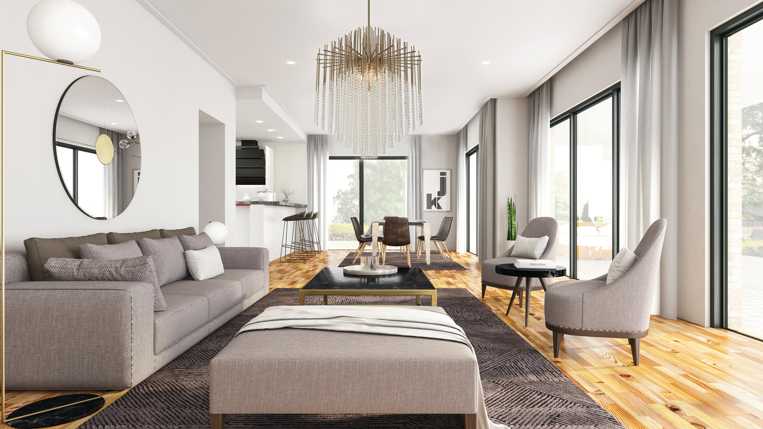 In the Array collection, many slender metal rods in a Brushed Champagne Gold finish hold strands of delicate faceted crystal beads for a look that’s dramatic and artistic. Array brings a glamorous warmth to a modern home.
