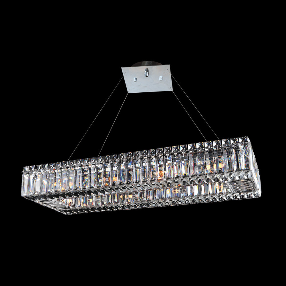 The Quantum Collection is a simplistically elegant interpretation of modern chandeliers. Each tier is a U-shape consisting of Clear Prism crystals tipped with Clear Square Stone crystals and finished in Allegri’s exclusive Chrome finish. With four shapes to choose from, these timeless chandeliers are suitable for any space.