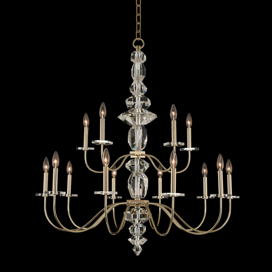 Sculptural take on a traditional chandelier. The framework features organically cut clear crystal column and a sleek Champagne Gold finish.