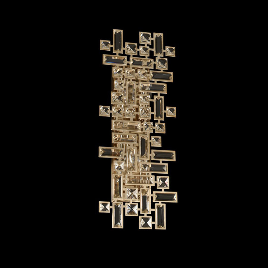 Art deco inspired design featuring laser cut steel frame, trendy shapes and Firenze crystal accents. Available in Polished Chrome or Brushed Champagne Gold.