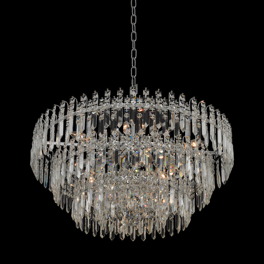 The Empire collection features edgy Firenze Crystal Spears and Squares in multi tier shapes with a Polished Chrome finish.