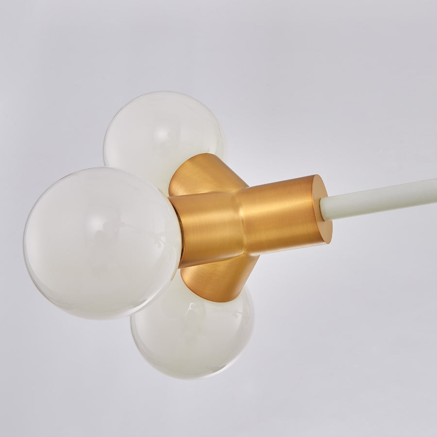 A Mid-Century Modern inspired design with a playful twist. The white opaque globes sit at the end of each arm striking the perfect balance between sophistication and fun.