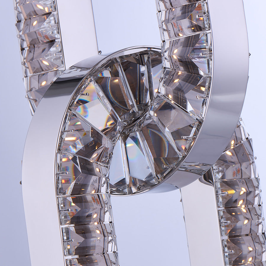 Link Collection chain link inspired design features LED, Firenze crystal in a cool Polished Chrome finish. Collection is fully dressed for easy installation.