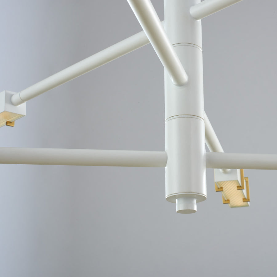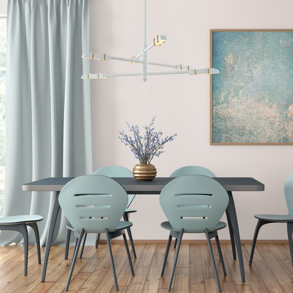 Presented in a warm Satin Brass and Matte White color combination for the ideal conversation piece.