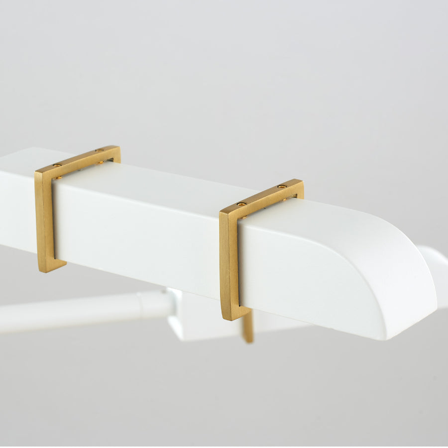 This low-profile silhouette features a trendy white and brass finish with reeded glass and a futuristic style. The arms and petite heads can articulate to position however you need them to. This is a definite conversation piece.